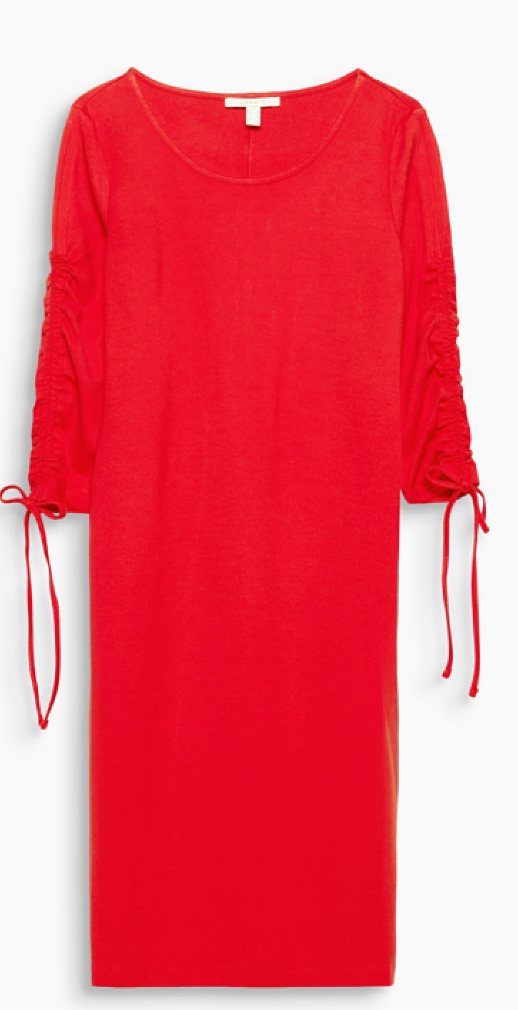 Abito rosso Esprit6. Il little red dress. Il rosso è il colore dominante di questa stagione, visto su tantissime passerelle. Da avere l’abitino con scollo rotondo e maniche arricciate per ogni party pre o natalizio. 49,99