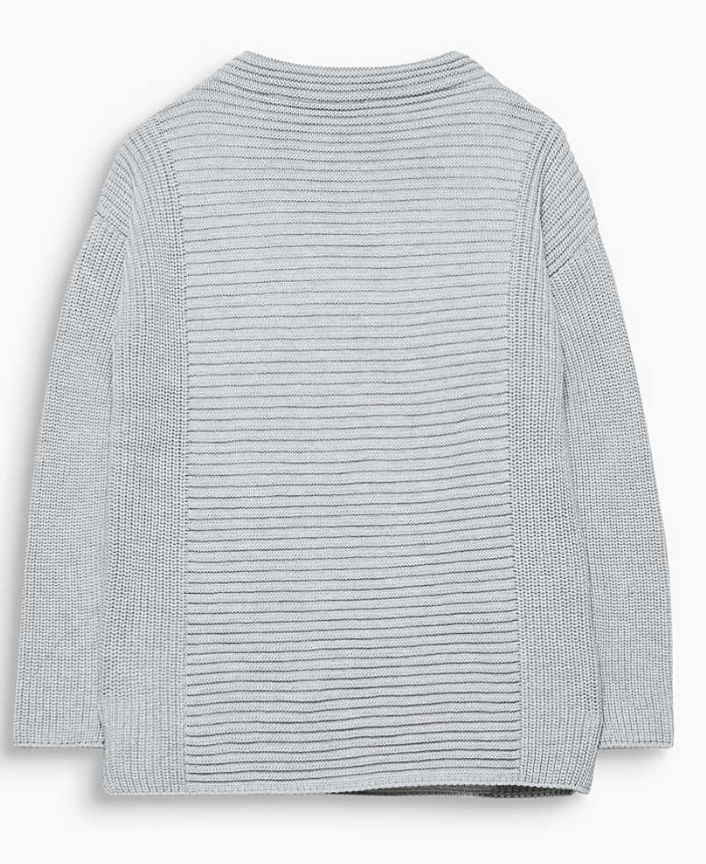 Schermata 2017-09-26 alle 09.46.019. La maglia compatta color ghiaccio. La lavorazione “serrata” le dà una forma più strutturata e elegante, col collo che sale leggermente. Calda ma anche chic sopra la gonna di pelle. 59,99