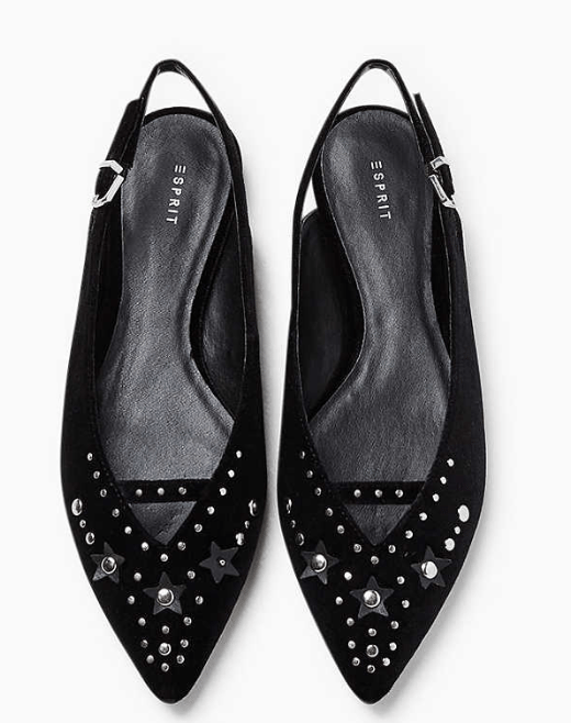 Schermata 2017-09-27 alle 08.09.3610. Le ballerina di velluto a punta. Personalità a zero cm da terra. Tutto per mettere in risalto la caviglia e il collo del piede: il laccio con fibbia, la scollatura e le applicazioni. 49,99
