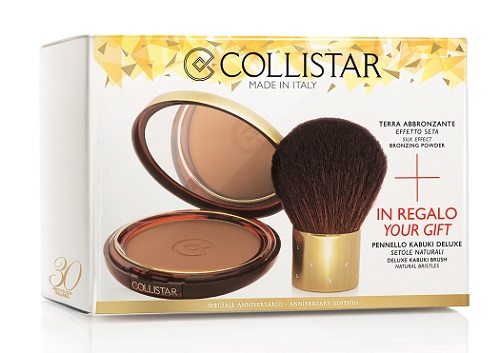 Ma perché la festa sia completa ci sono anche le confezioni Speciale anniversario, un regalo che Collistar fa alle sue consumatrici: laTerra Abbronzante regala il pennello Kabuki Deluxe, i mascara regalano il piegaciglia, le Gocce Magiche hanno in omaggio il Magico scrub pre-autoabbronzante, gli anticellulite il Mascara Design e le creme viso il Primer Uniformante Viso e Occhi. Auguri!