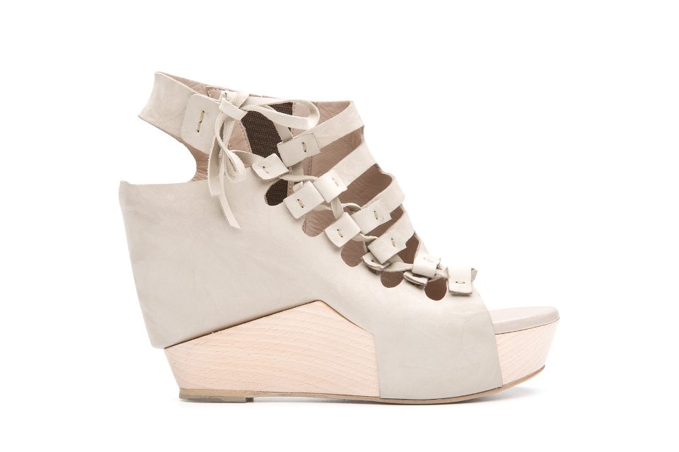 *Look*: Potrebbe coniare una nuova categoria di scarpe “le strapazzate ma felici”. Cinzia è una specialista nell’arte di scomporre zeppe, tacchi e tomaie. Nella sua collezione P/E 2011 sono presenti scarpe dalle zeppe vertiginose ( ma comode), tomaie che seguono linee aerodinamiche, ma tutte accomunate da due dettagli che contano: artigianalità e leggerezza. Molta attenzione anche alla scala cromatica: solo toni neutri, freddi che sottolineano il design della calzatura.