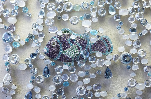 L’aspetto veramente serio dell’alta gioielleria è l’estremo valore dei materiali, che prevedono grandi cascate di pietre preziose rare o rarissime. L’approccio creativo invece è tutto fuorché serio, se si intende nella sfumatura seriosa, perché ciò che vince è la fantasia e la stravaganza. Nessuno come i grandi clienti di gioielleria ha bisogno di svagarsi, di evadere, di non annoiarsi mai. Oro, platino e diamanti di medie dimensioni sono banali come la mini-michetta calda nella haute cuisine, cioè un accompagnamento di dovere, non certo una portata. Infatti il menu della Biennale des Antiquaires, il Salone del vero lusso (quello che pochissimi colti e facoltosi possono permettersi) presentava stand di gioielleria ricchi di inedite sorprese a non meno di qualche decina di migliaia di euro, fino a massimi di più di un milione. C’erano chicche per connoisseurs come la collezione di Van Cleef & Arpels tutta dedicata a Jules Verne. Basti dire che lo stand era allestito come un sottomarino e terminava con una mongolfiera: all’interno spille, sautoir, collier e anelli ispirati a “Ventimila leghe sotto i mari” e via fantasticando. Da Chanel un’altra meraviglia: una spilla a forma di piuma tutta tempestata di diamanti lunga oltre venti centimetri e snodabile, da portare sul petto ma anche a cavallo della spalla, un capolavoro. Da Cartier vincono le strutture architettoniche dei preziosi e la qualità delle pietre, tra le quali primeggia il colore anche quando si tratta di diamanti: le clienti che siedono nei salottini infatti sono già ben oltre i diamanti bianchi, li vogliono gialli o rosa, i più rari e ipnotici. Una parola per Louis Vuitton, che l’anno scorso si è affidato alla matita immaginifica di Lorenz Baumer, designer già noto sulla piazza parigina, il quale ha prodotto una serie di collier esplosivi come fuochi d’artificio e di una qualità pregiatissima in termini di “brilli” tagliati a forma del monogram della Maison. Infine un cenno a Chopard, che per i 150 del brand si è regalato un Bestiario divertente e anticonvenzionale tutto in misura di pezzi unici: c’è il collier con le scimmiette pavettate che rubano l’uva, il bracciale a forma di sciame di sardine, l’orsetto polare bianco di diamanti e l’anello con il piccolo koala di rubini abbracciato al suo albero. Se c’è un elemento in comune tra l’alta gioielleria e i fashion bijoux è la tendenza figurativa: i gioielli astratti e geometrici, molto design ma anche un po’ freddi, non seducono nessuno se non i designer stessi e i loro amici.