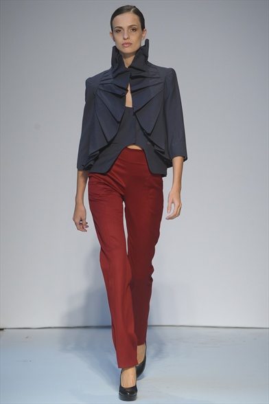 *Look*: Con un gioco di parole potremmo dire che “non c’è piega che faccia una piega”. Lo stile di Giovanni Clemente è ricercato, nei tessuti, che vanno dai crêpe de chine, ai georgette fino ai mikado, e nei tagli, che seguono delle geometrie ben precise. E’ un look “pret-à-porter”, nel senso più etimologico della parola, ovvero pronto da indossare, ma assolutamente non scontato.