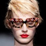 4. *Occhiali naif:* ovvero decorati con margheritine bicolore, che incorniciano la montatura. Un effetto nerd con l’aggiunta di regressione all’infanzia. Prada può. Cura beauty: siero contorno occhi e extension alle ciglia.