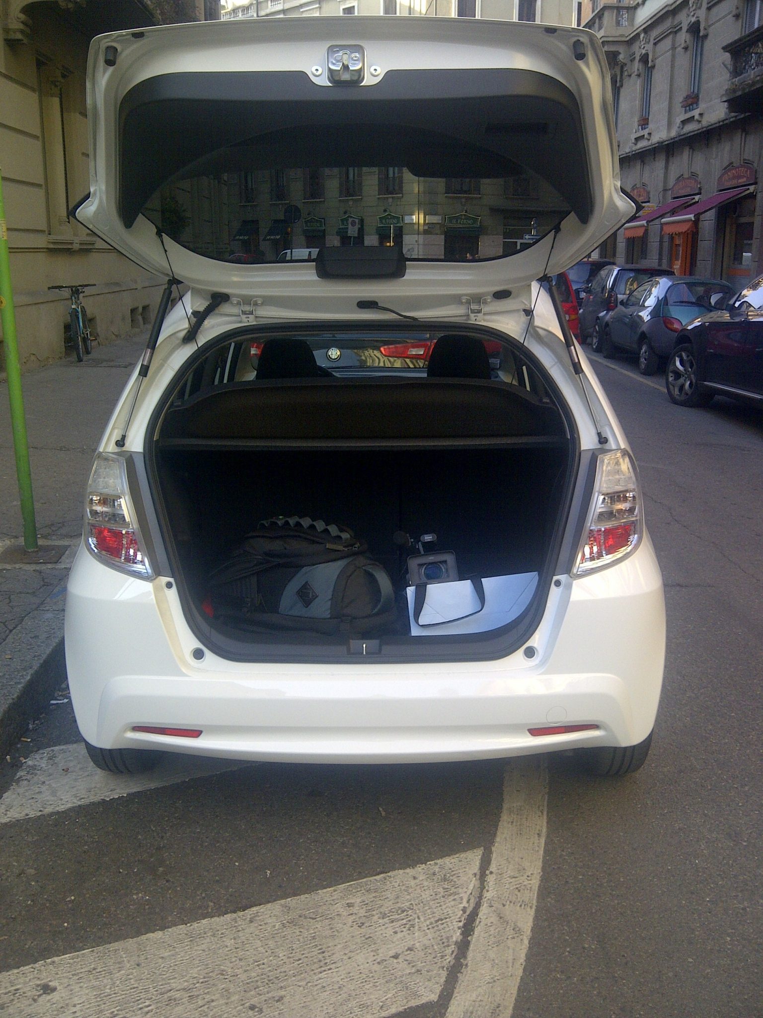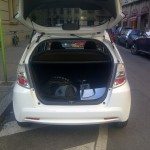 Provare la nuova Honda Jazz Hybrid, proprio durante la settimana della moda milanese, è stata una grande fortuna. Intanto perché essendo ecofriendly ha permesso alla troupe di Lost in Fashion (operatore, redattrice, io, telecamere etc) di spostarci insieme in modo rapido e di stare sereni con la zona C. Andando presto per coprire i backstage, abbiamo anche sempre trovato parcheggio e sfruttato ogni suo comfort (il vano portabottiglie, il tetto vista cielo, il bagagliaio per contenere tutta l’attrezzatura oltre ai vari inviti, pass etc) dopo singoli show. Il cambio automatico ha aiutato nei momenti di coda tra una sfilata e l’altra evitando al polpaccio della gamba sinistra di diventare come quello di un calciatore; muovendolo poi in posizione Sport il volante diventa più maneggevole ed è più semplice superare al mattino presto le vecchiette in bicicletta che vanno al mercato, quando tu invece sei in ritardo per la sfilata di Maxmara che inizia alle 9.30. Anche il rifornimento non è stato un problema: nei nostri 5 giorni di sfilate siamo ancora a metà serbatoio, il che significa che i consumi (e gli sprechi) sono ridotti e questo ci piace (come il motore metà elettrico e metà a benzina, che è l’anima della macchina).