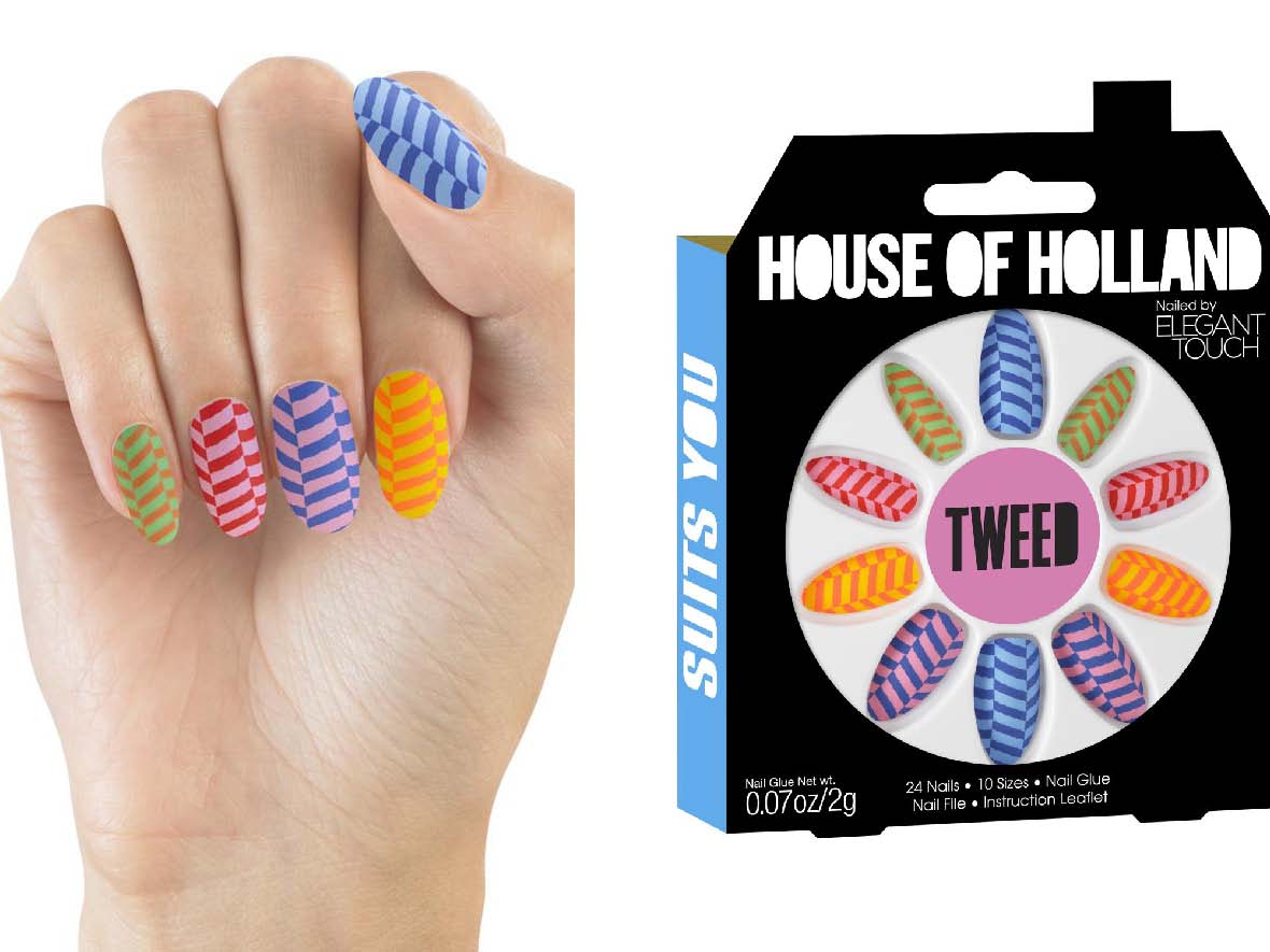E’ il caso della collaborazione tra Elegant Touch, brand di unghie finte inglesi, e Henry Holland lo stilista inglese di House of Holland. Le ispirazioni sono i colori, le stampe e le impertinenze del designer inglese, rinchiuse in un packaging-casa che è anche il logo del marchio. Colori brillanti, faccette espressive, fantasie accese e divertenti, che ricordano la sua collezione per l’inverno 2013 di cui amo gli abiti cocktail. No non quelli per le serate, quelli coi bicchierini di Martini ricamati in fondo alla gonna o stampate sui jeans.