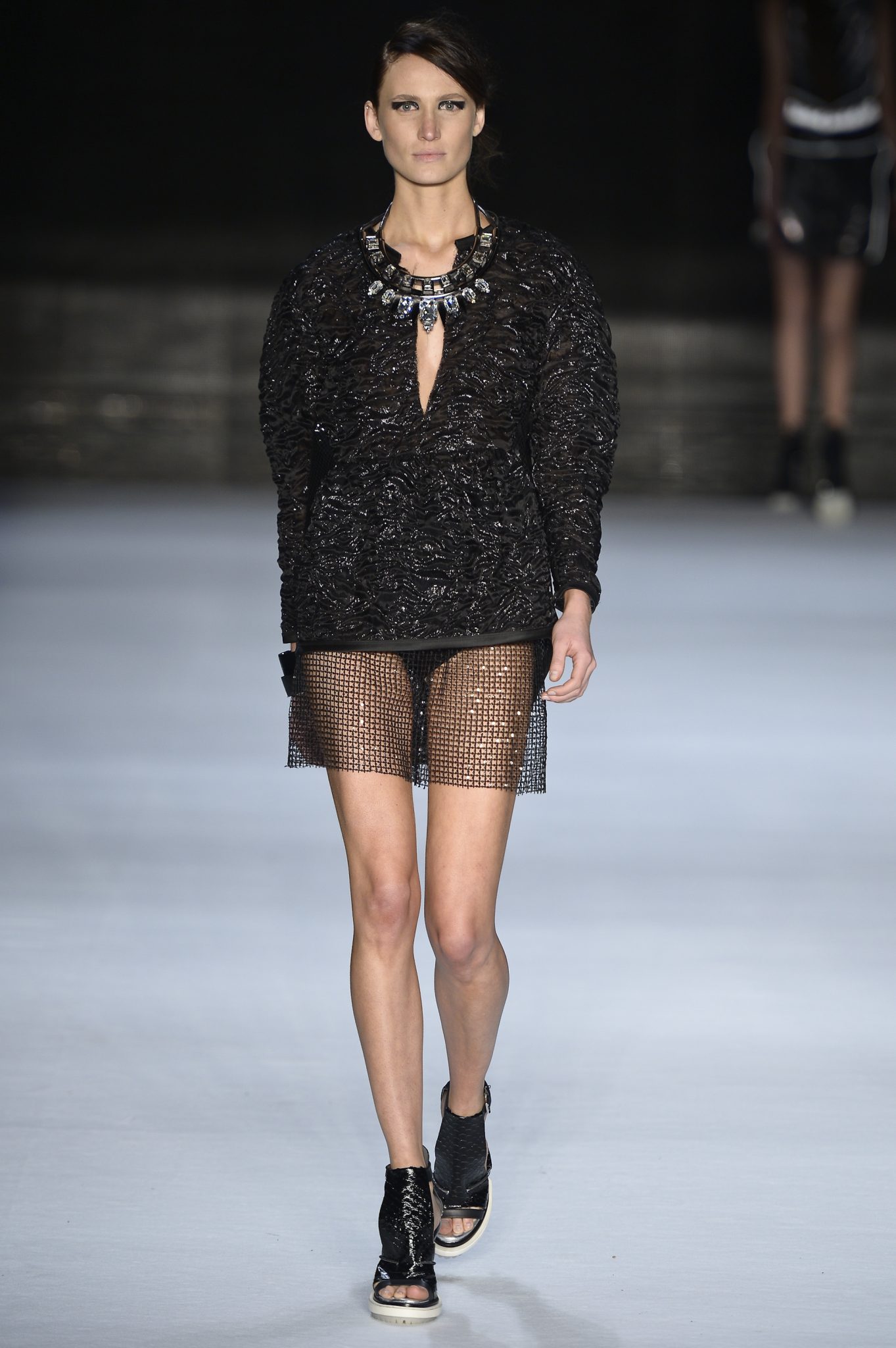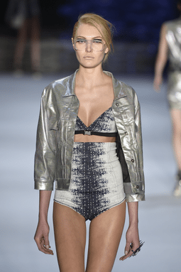 Anche da Ellus bikini con giacca d’argento per donne squid, scattanti e imprendibili come pesci. Per loro anche trucco al “nero di seppia”, collane importanti, giacche carapaci con gonne di rete.