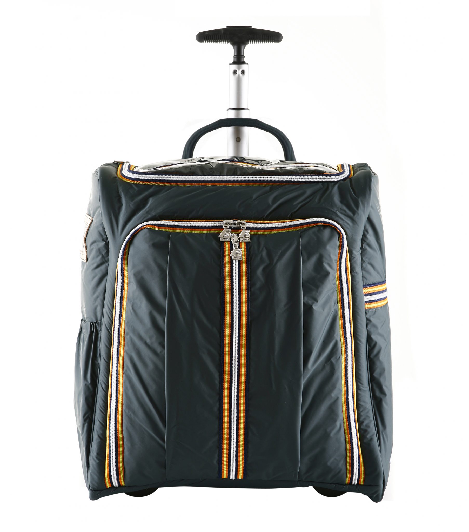Il tessuto è tecnico come quello delle giacche, il nylon e il poliestere. Lo stile e le le linee sono tipiche anni ’70. L’ unico difetto è quello di non stare in un marsupio. Sono le valigie e le borse unisex di _K-way_ , tutte super colorate ed estramamente geniali: la collezione comprende, zaini e sacche da città, trolley e borsoni da viaggio e sacche da palestra. Tutte sono in tessuto impermeabile, imbottite con fodera e tasche interne, zip in tinta o multicolor e dettagli in vera pelle sulla maniglia. Noi abbiamo scelto fra tutti il più cool: è il trolley da viaggio unisex in tessuto nylon Plus, dotato di K-way System, il copri-trolley con cui si può letteralmente impacchettare la valgia per non sciuparla. In più la misura è quella perfetta per il bagaglio a mano! Preparate la valigia, non sentite aria di lungo ponte?!