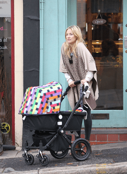 Kate HundsonPer una passeggiata per le strade di Londra con sua figlia, nata lo scorso luglio in una clinica di Los Angeles, Kate Hudson ha optato per un lungo poncho con maniche a tre quarti color caffelatte e con un motivo geometrico firmato Pringle of Scotland.