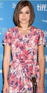 Keira KnightleyVivace e senza dubbio ultra chic. Keira Knightley, in occasione della press conference del film “A Dangerous Method” tenutasi durante il Toronto International Film Festival, ha indossato un abito “da educanda” in crepe de chine rosa con stampa anemoni nei toni del rosa e del blu con balza e fiocco in vita. Il look si firma Moschino Cheap & Chic Resort 2012.
