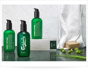 A cavallo tra gli anni ’70 e ’80 aleggiava nell’aria la leggenda metropolitana che usando la birra come abbronzante si otteneva una tintarella dorata in breve tempo. Bufale ovviamente. Ma alcuni componenti della birra, quali il luppolo, il malto e il lievito, hanno davvero un effetto benefico per la pelle perché contengono silicio e vitamina B. Questo ha portato Carlsberg a creare una mini linea di grooming per uomini. Tutti e tre i prodotti, shampoo, balsamo e crema corpo, contengono mezzo litro di birra Carlsberg. Il processo di creazione è molto interessante, la birra viene liofilizzata, la polvere ottenuta viene miscelata con ingredienti organici per ottenere una serie di prodotti unici e in edizione limitata. Chi volesse regalare alla propria metà, o perché no provare (anche il gentil sesso ama la birra), può acquistare il kit a 64€ sul sito di Carlsberg.