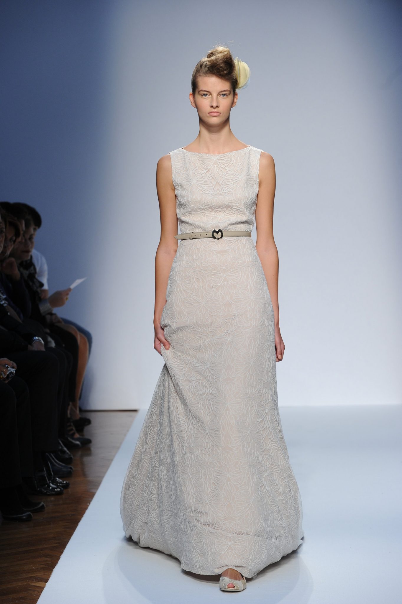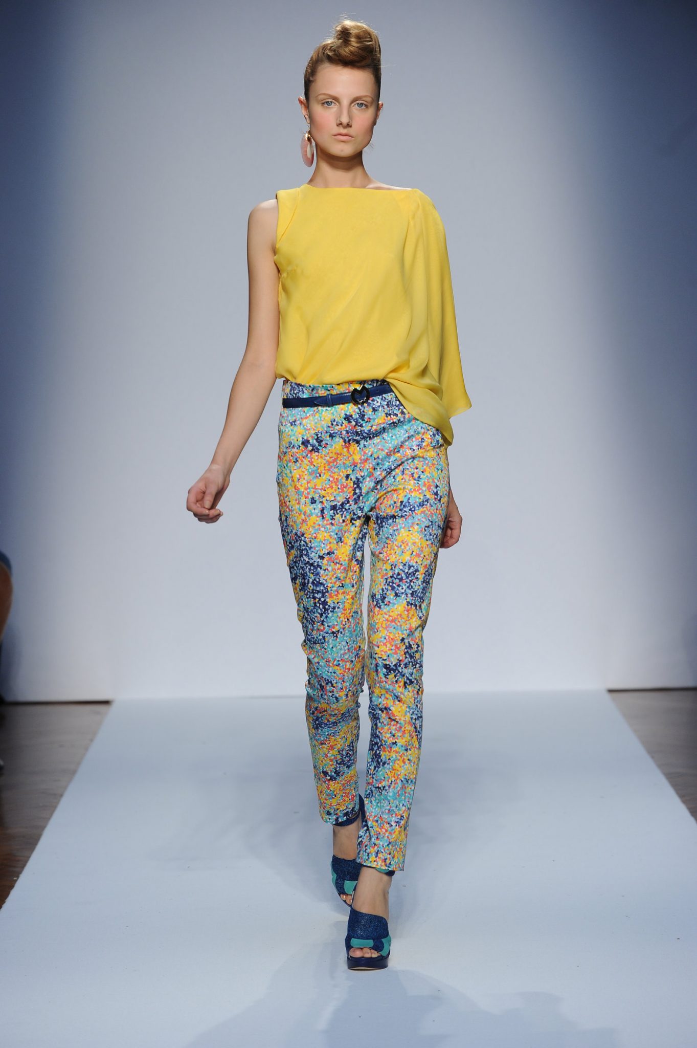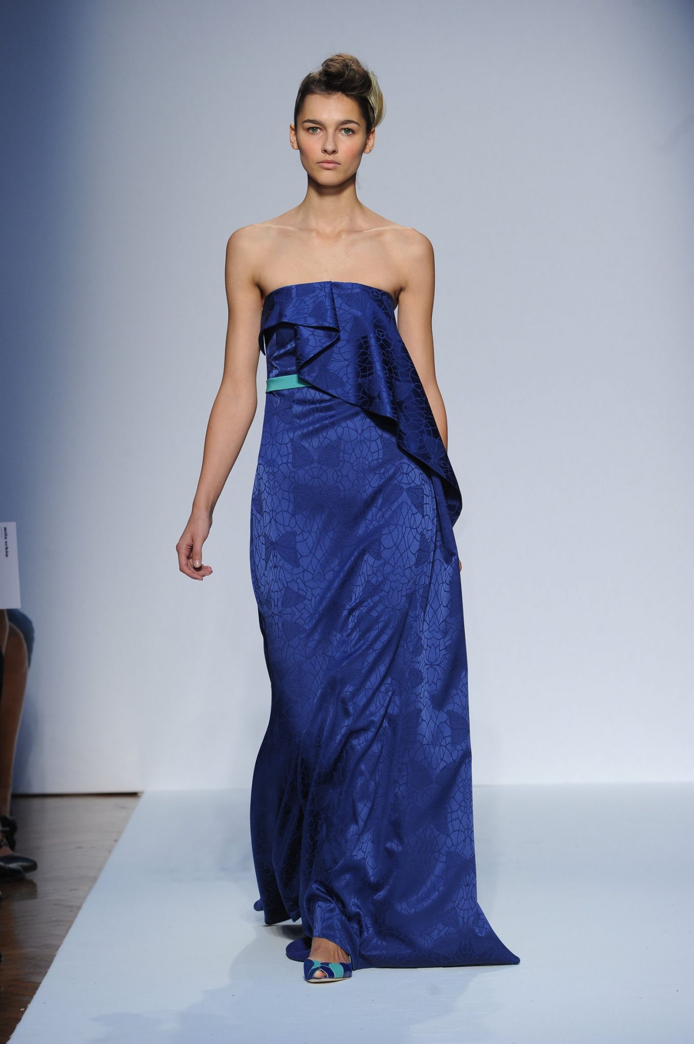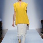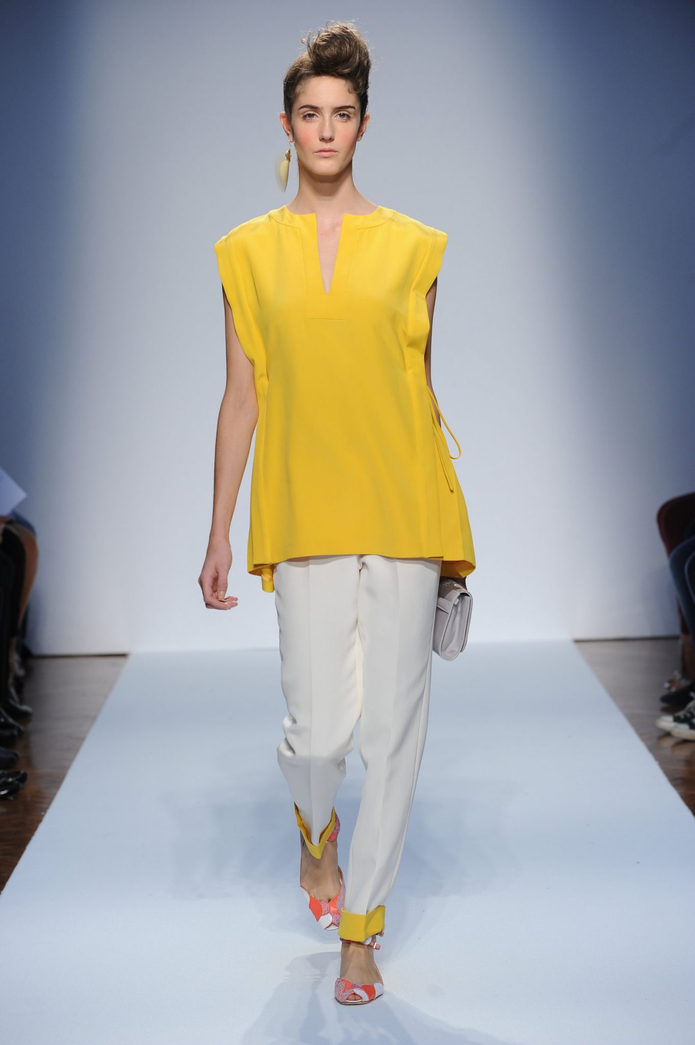 Leggerezza e un senso della femminilità sfuggente e delicata. Pannelli, volant e petali di tessuto. Gesti minimi ma eterei che impreziosiscono tubini essenziali, abiti a colonna e pantaloni.