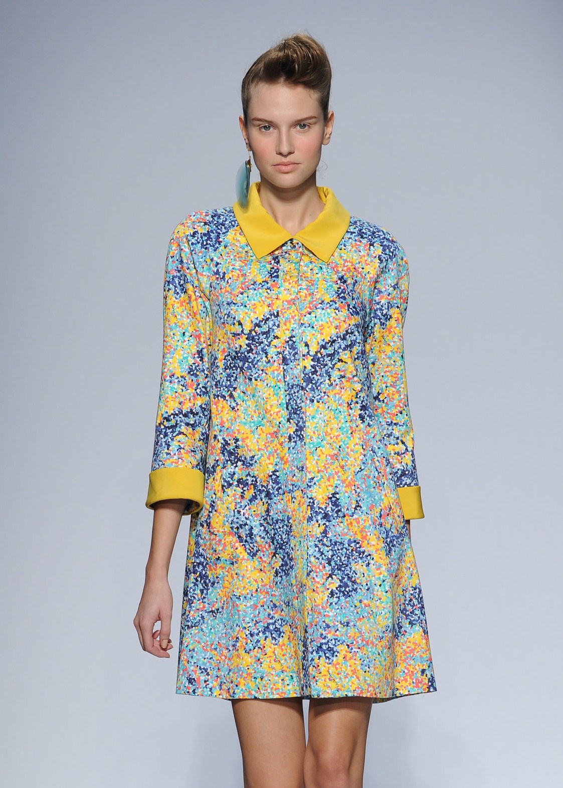 Avorio e cammello, bianco e giallo pallido si accendono di note corallo, verde acqua e giallo fluo, cobalto e celeste.