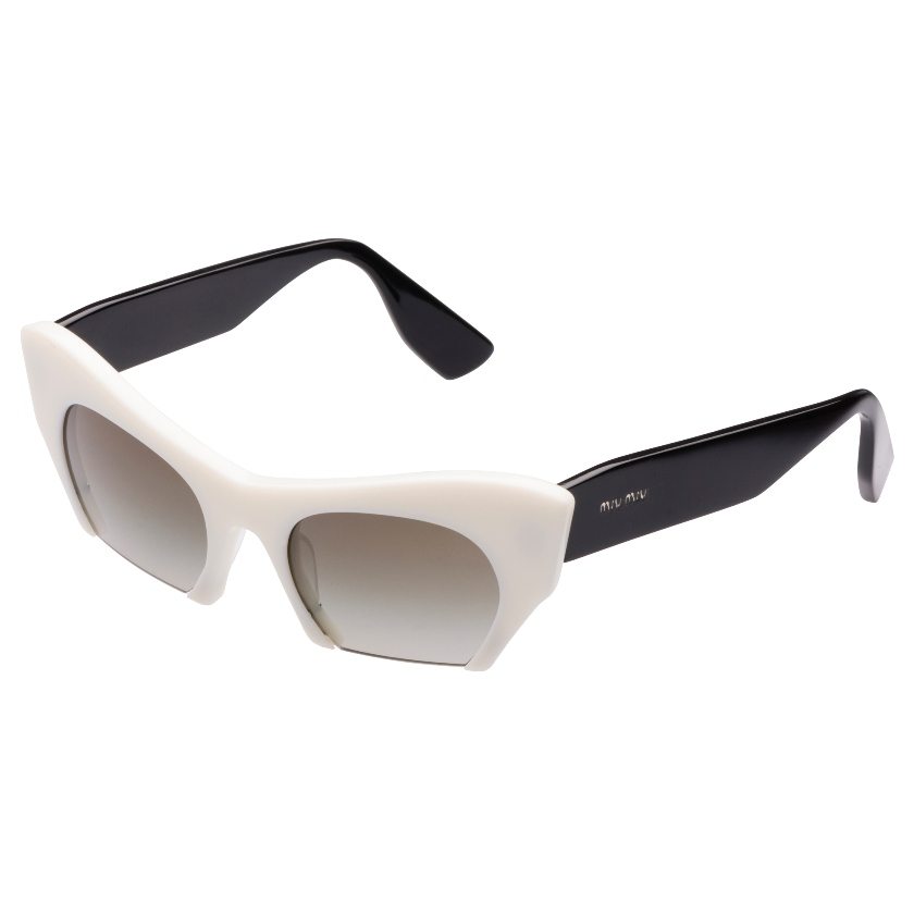 Miu MiuSegni particolari: la parte inferiore tagliata di netto come da un colpo di rasoio. Belli! Sono gli occhiali della collezione Capsule Miu Miu Rasoir Sunglasses, in diverse finiture e modelli (anche da vista): in versione bianco e nero, nero e ibisco oppure tartaruga, pomice, caramello. Disponibili da maggio. Costano 230 euro.