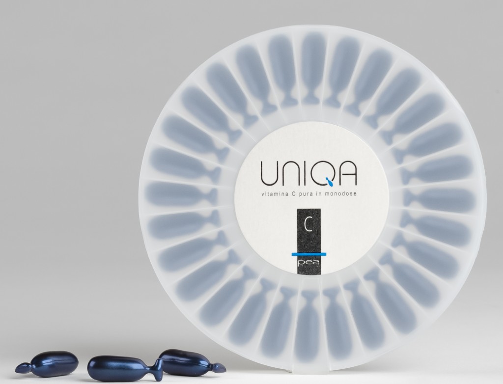 Le vitamine sono in blister – la confezione è uno degli elementi per me più attraenti – di 28 capsule (il ciclo di rinnovamento della pelle è proprio di 28 giorni): si può scegliere tra A, C ed E, a seconda delle esigenze di ognuna (da qui il nome Uniqa), ma possono essere anche combinate (in abbinata, una la mattina, l’altra la sera) per ottenere un effetto migliore. Si applicano sul viso ben deterso sotto la vostra crema abituale, ma Uniqa fornisce anche creme per completare il trattamento. Ma torniamo alle vitamine.