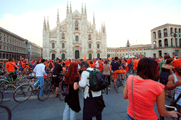 OrangeIsTheNewBlackWell, finally Milan has got his fame of trendy city back today. Apparently showing a brand new colour trend for the next seasons: orange. And that thanks not to Prada (or maybe she has also that kind of political pre-vision) but to the new mayor, Giuliano Pisapia. Orange was the colour of his campaing, supporters, posters, pins and maybe thoughts and, though not an easy tone to wear before a decent sun-tan, orange was the dominant nuance of the joyful crowds in piazza Duomo and thereabout, and even of the kids on the vespas with orange helmets and ballons and flags who rode the streets like after a soccer victory (Milan had his Champion’s league moment, in a way). But now…what are the fashion risks of orange? And what the strategies to be orange-looking if not orange-wearing? Well, I guess orange is perfect for a dress, less for a man suite (a jacket is ok). Better a shirt than a T-shirt. Better a scarf than a pair oj pants. Orange neon polish is perfect, orange shades for hair not so appealing. Yes for Lips and cheeks, bags and heels, but not all together. And if you want some names of log lasting orange tradition: choose Hermes and Tory Burch. Cannot wear the winning colour? Choose a spritz at the aperitivo. Or a Fanta all day. Or take the tram in Milan: it was orange also before, but this is not an issue.