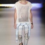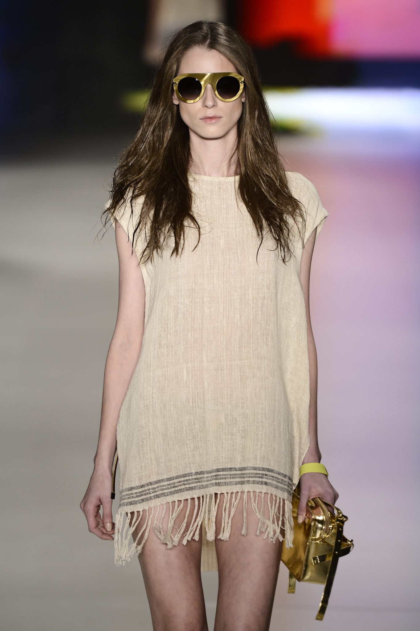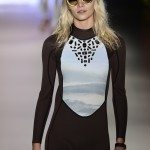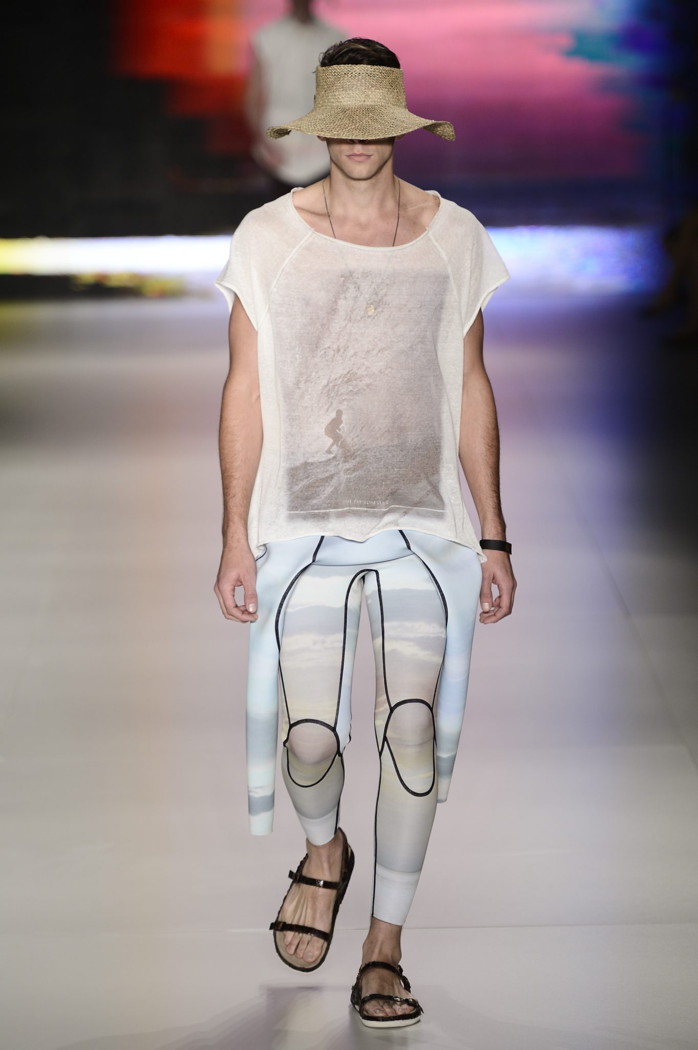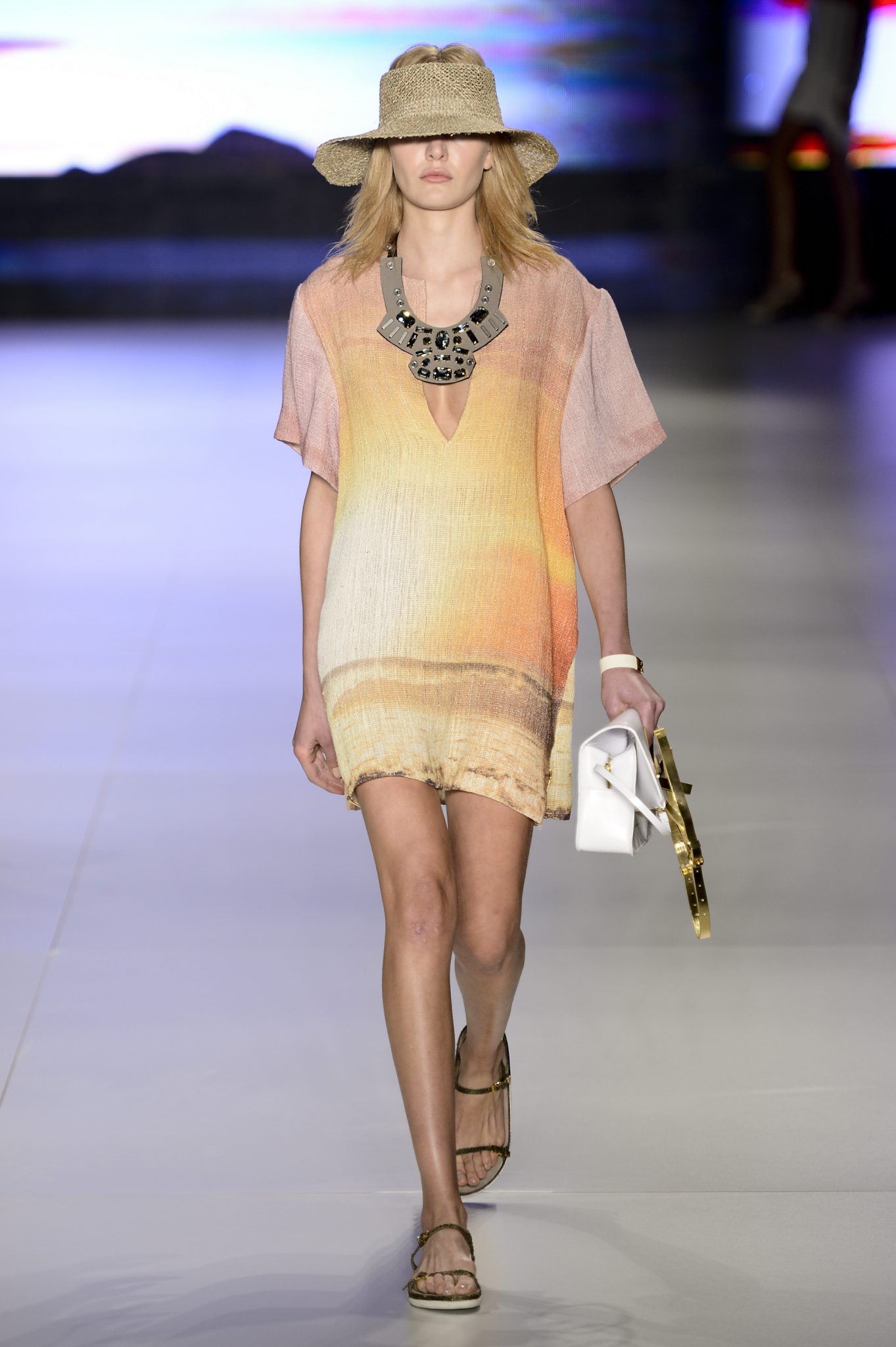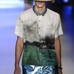 OsklenEcco una sfilata da guardare con attenzione. Perché i capi che vedete potete trovarli in Italia. Osklen è uno dei marchi brasiliani più diffusi da noi, con due negozi a Milano (Porta Ticinese e via Manzoni) e uno a Roma. Anche in questa primavera estate Osklen non tradisce la sua origine sportive (tutto nacque negli anni ’80 da un’avventura di snowbordisti brasiliani che cercavano capi tecnici…) ma ripensate in chiave chic: così la muta da sub per lei diventa una sexy tuta da cat woman (con tanto di maxi cristalli), mentre per lui viene stampata con onde e surf e abbinata alla T-shirt. Tutto sa di mare e felicità: i cappelli di paglia calati sugli occhi, i capelli effetto bagno-appena-fatto, la tracolla con il pesce stampato, gli occhiali con montatura dorata, l’abitino di spugna effetto accappatoio. Unisex la camicia con baia stampata da portare in coppia: hai visto mai dopo l’estate ci perdessimo!