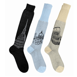 L’Italia s’è desta. Per celebrare i 150 anni dell’Unità d’Italia, il calzificio Bresciani, da sempre sinonimo di eccellenza, ha pensato di presentare, al Pitti 79, Fratelli di calze, un cofanetto con tre gambaletti che raccontano la storia della nostra nazione: il modello tricolore, quello con l’inno di Mameli e l’ultimo con il volto di Cavour. Amor patrio verso il nostro Bel Paese rivela anche la linea Capitali che, dopo aver omaggiato la Mole Antonelliana di Torino e il Duomo di Firenze, si arricchisce del monumento simbolo dell’Italia nel mondo: il Colosseo. Roma caput mundi.