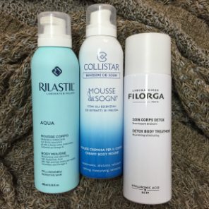 L’idratazione del corpo è un gesto fondamentale in qualunque stagione. La crema andrebbe applicata una volta al giorno. Io di solito la metto due volte, perché ho la pelle abbastanza secca, ma mi rendo conto che spesso manca il tempo, o la voglia, per farlo. Ci vuole una crema che si assorba velocemente, che non si debba massaggiare a lungo e che non lasci tracce, così ci si può vestire subito dopo. La mattina siamo tutte di fretta, io per prima. Tra le varie texture in commercio ho deciso di provarne una “veloce”: la mousse. Anzi ne ho provate tre: Rilastil Aqua mousse, Collistar Mousse dei sogni e Filorga Soin corps detox. Come comune denominatore hanno il fatto di essere mousse, ma rispondono a tre esigenze diverse.