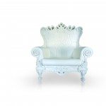 Ho trascorso due ore in Tortona 35 tra principi e principesse. Mi sono seduta lì con loro e non volevo alzarmi più…. Quella che vedete in foto è Queen of love (€600), la poltrona che ti fa sentire come una regina. In effetti è davvero molto comoda. Alla base, infatti, c’è uno studio molto preciso di pesi (non va oltre i 20 kg) e design come la curvatura dello schienale leggermente in avanti e il baricentro basso del sedile che solleva le gambe e fa appoggiare solo la parte centrale della schiena. E’ tutta realizzata in plastica (polietilene lineare riciclabile) ed ha l’ allure barocca dei mobili del periodo Luigi XIV shakerata a colori pop (Candy pink, Ethereal Blue,Pure Green etc..).Non contenta ho allungato le gambe sul pouf Little Prince of Love. Ma questa è tutta un’altra storia..OPS! Volevo dire favola….
