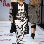 A, B, C, D & G. Il lettering è la nuova D&G-mania. E’ stampato ovunque su felpe, maglie di lana infeltrite dai cui sbucano gonne in chiffon, gonne a tubo fino al ginocchio, panta skinny e bijoux. Fa eccezione la giacca dal taglio maschile, ma la medaglia ha sempre due facce: date un’occhiata al risvolto.