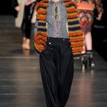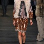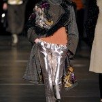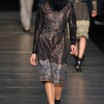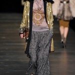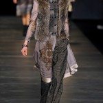 L’ispirazione viene dalle antiche civiltà (Gilet di frange colorate e pellicce di lana o tuniche con dettagli in agnellino e stampe degli arazzi su gonne e maglie ), e dall’età del ferro. La donna pensata di Etro è un iron girl, una donna Highlander, forte, audace e nel contempo femminile. Per forza, con i tempi che corrono, e questi uomini sempre più in balia degli eventi, qualcuno deve pur tirare fuori la grinta. E tocca a noi. Riflessi metallici su pantaloni, gonne ricordano il colore del ferro, così come anche le cinture lucenti.