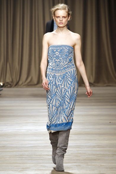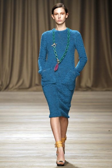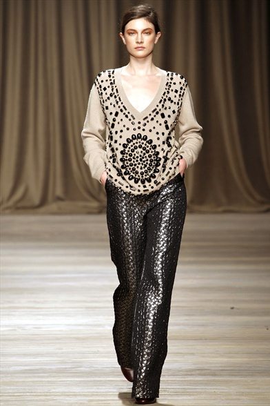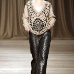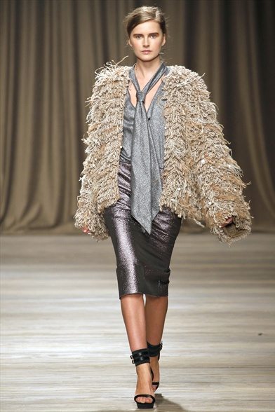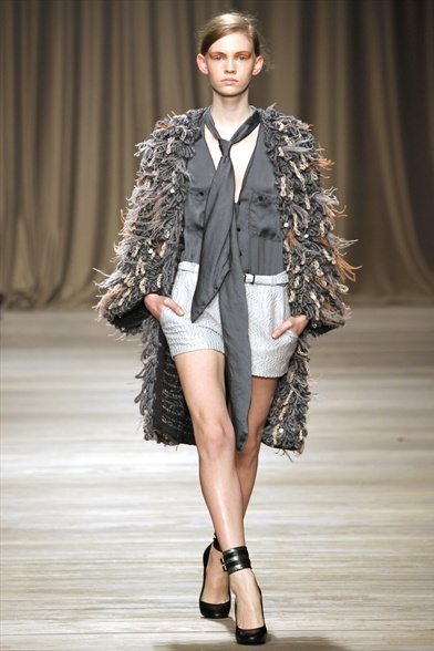 La donna di Iceberg prende ispirazione da Maria Schneider. Non dal personaggio che ha interpretato in “Ultimo tango a Parigi”, ma dalla persona, dal suo carattere ribelle e dal suo stile: da una parte borghese, dall’altro estremamente trasgressivo e sensuale. Cappotti in lana, parka con patchwork di pellicce, abiti di maglia su cui sono ricamati disegni con pietre dure o metalli colorati, forme morbide e fluide. Una donna ammiccante e un po’ barocca.