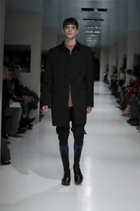 Lo spirito è intimista. Quello di un uomo che decide di mettersi indosso quel che vuole (la signora Prada), sovrapponendo i diversi strati che raccontano la sua storia e rendendo la collezione “privata” come quella d’arte che si tiene in casa, fatta di successive acquisizione di idee e di stati. Dunque: camicia, maglia, giacca, una sopra all’altra, il tutto contenuto in un capotto cubico, dalle spalle enormi (ps ricordarsi di far allargare gli armadi).