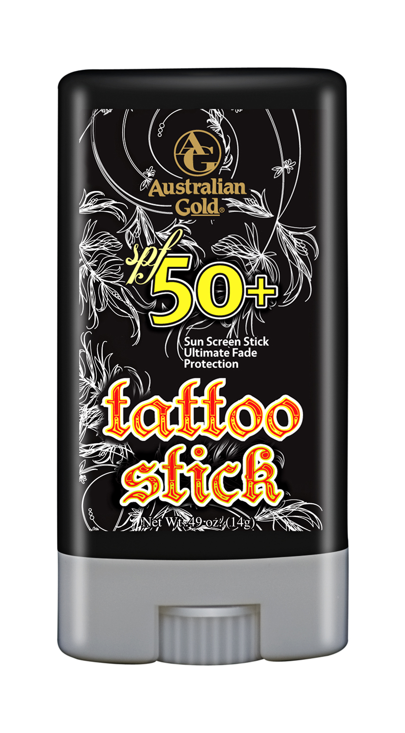 1. Australian Gold SPF 50+ Tattoo Stick: ha 4 filtri, due solo UVB, uno UVA e uno che fa entrambi. Contiene poi ossido di zinco, un ingrediente usato come filtro nelle formulazioni australi (hanno il buco del’ozono, si devono proteggere moltissimo). Spesso i solari con ossido di zinco sono difficili da stendere e pastosi/biancastri, a questo inconveniente risponde la formula in stick, resa possibile dalla presenza di ozocherite, una cera minerale derivata dal petrolio. Ma qui sta anche il suo punto debole: i derivati del petrolio sarebbe meglio non applicarli sui tatuaggi, perché sbiadiscono gli inchiostri. Ovviamente i filtri sopracitati rendono praticamente nulla la possibilità che la cera influisca sul colore, quindi rimane a mio avviso il migliore. Contiene burro di karité, ottimo per l’azione lenitiva e idratante. Da stendere senza sporcarsi le mani, insistendo sulle zone tatuate. € 16,50