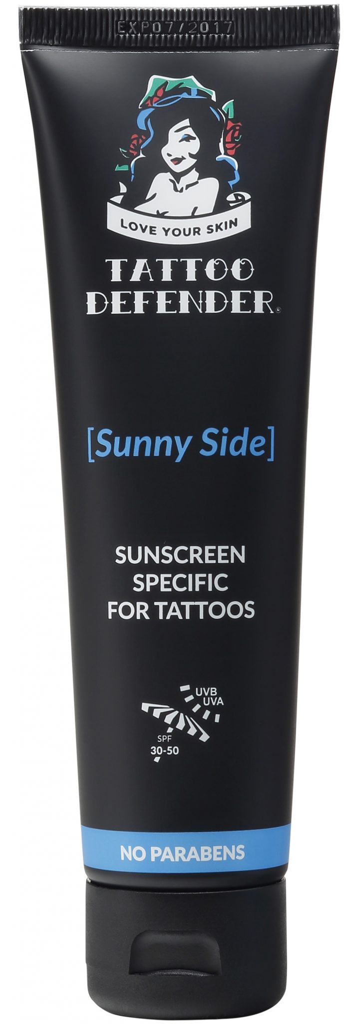 5. Tatto Defender Sunny Side (Spf 30-50): ha due filtri solari collaudati uno per gli UVA e uno per gli UVB, il pantenolo come lenitivo e una serie di estratti vegetali come idratanti ed emollienti (olio di riso, olio di cocco, aloe idratante). E’ presente la gardenia tahitiana (Monoi di Tahiti) che regala al prodotto una profumazione particolare. Formato 100 ml, € 24,50. Per acquistarlo, www.tattoodefender.com