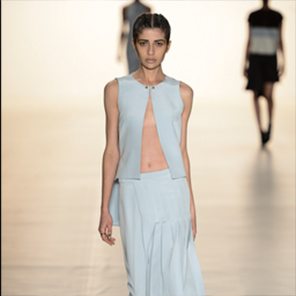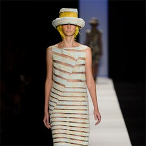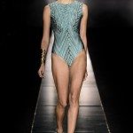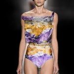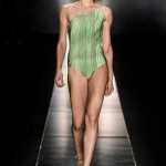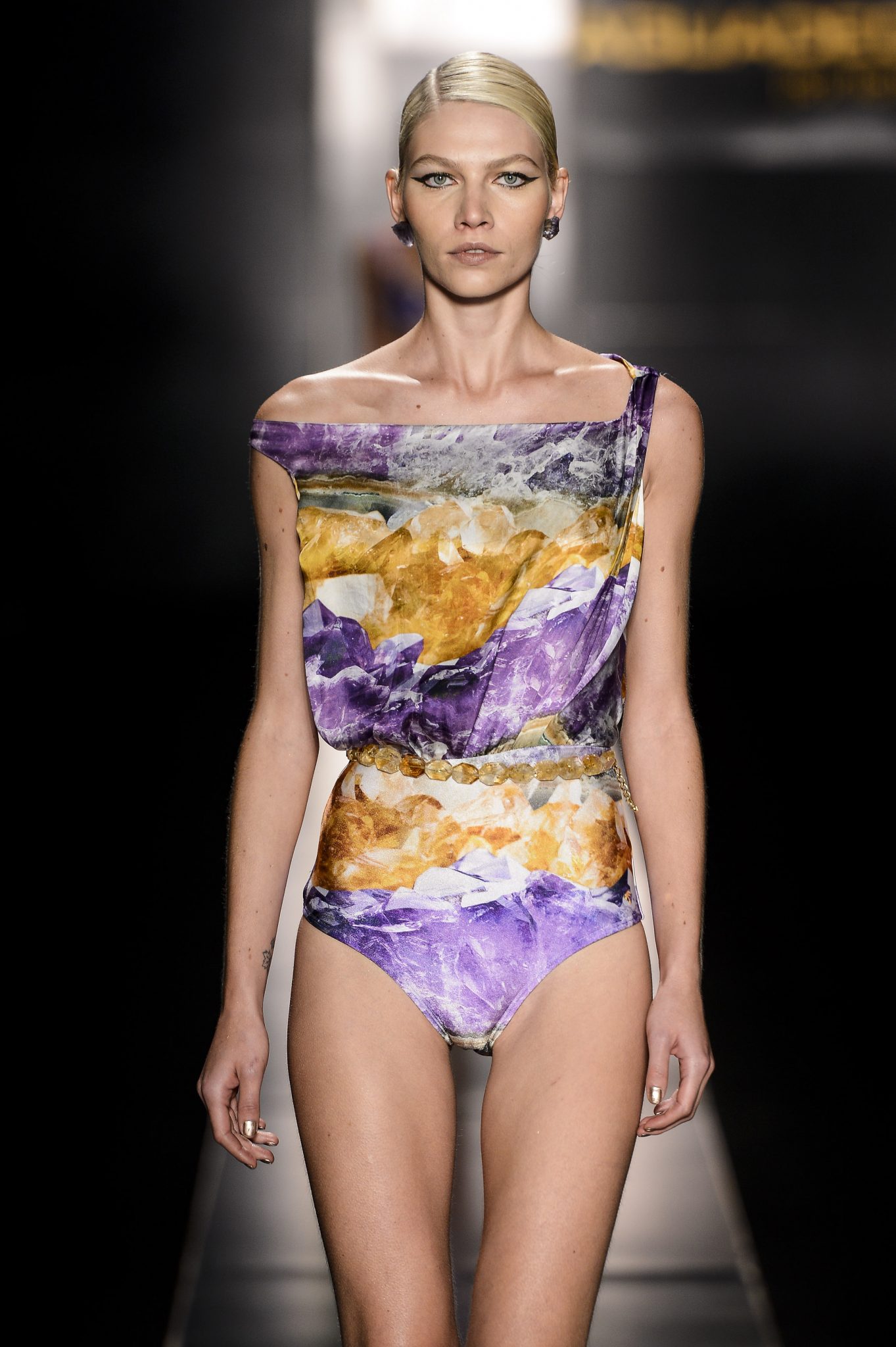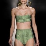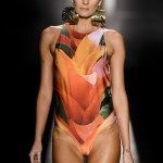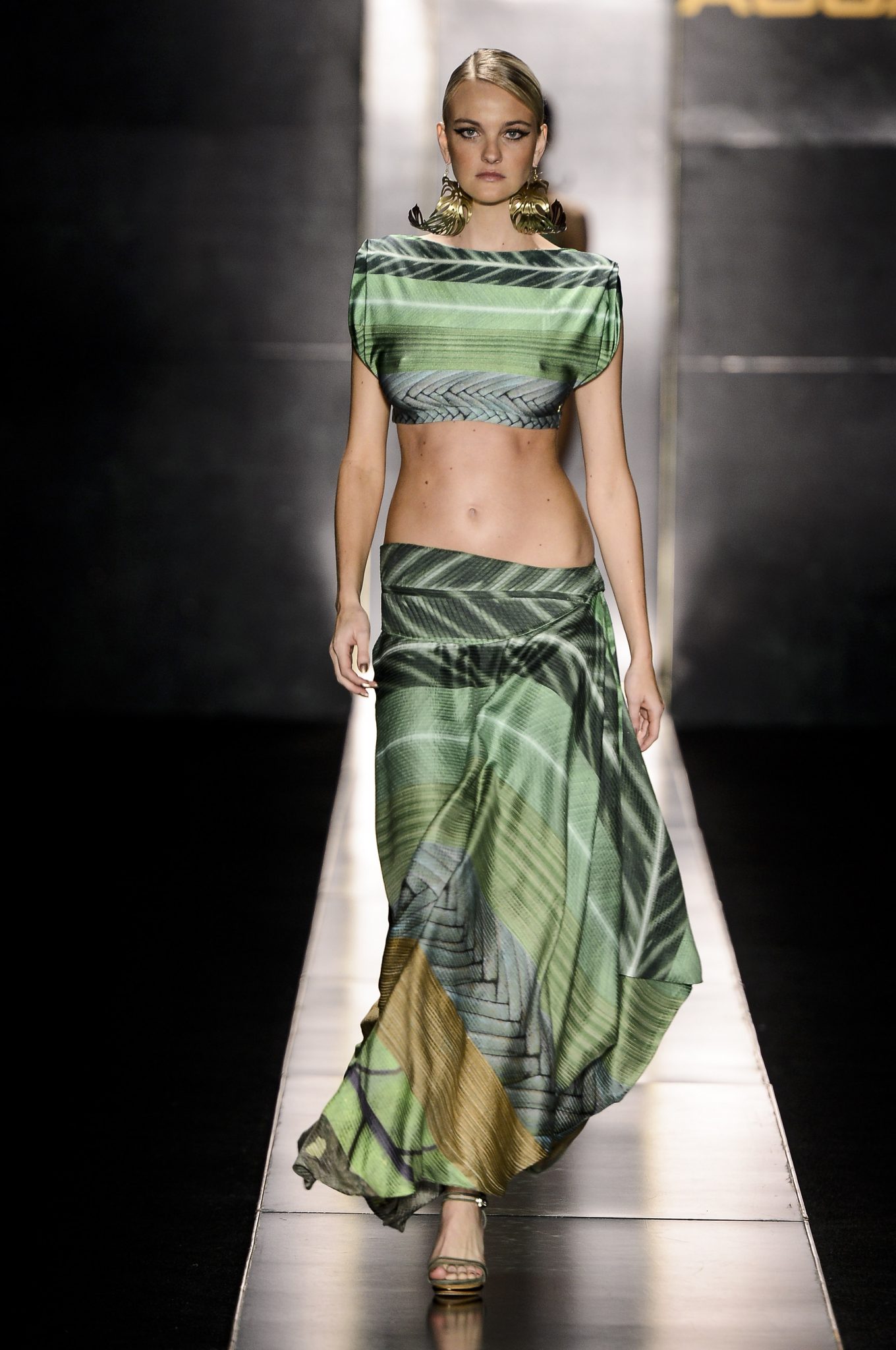 … a quella di banano o di palma, le specie botaniche non contano, tanto a Isabeli Fontana sta bene tutto (e non solo a lei, in questa sfilata). A Agua de Coco, brand specializzato in beachwear, la foresta suggerisce stampe, forme e colori. Per bikini, abiti e body-blusa da portare, nel dopo spiaggia, coi tacchi. Se il fisico regge.
