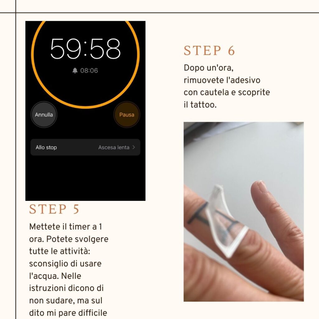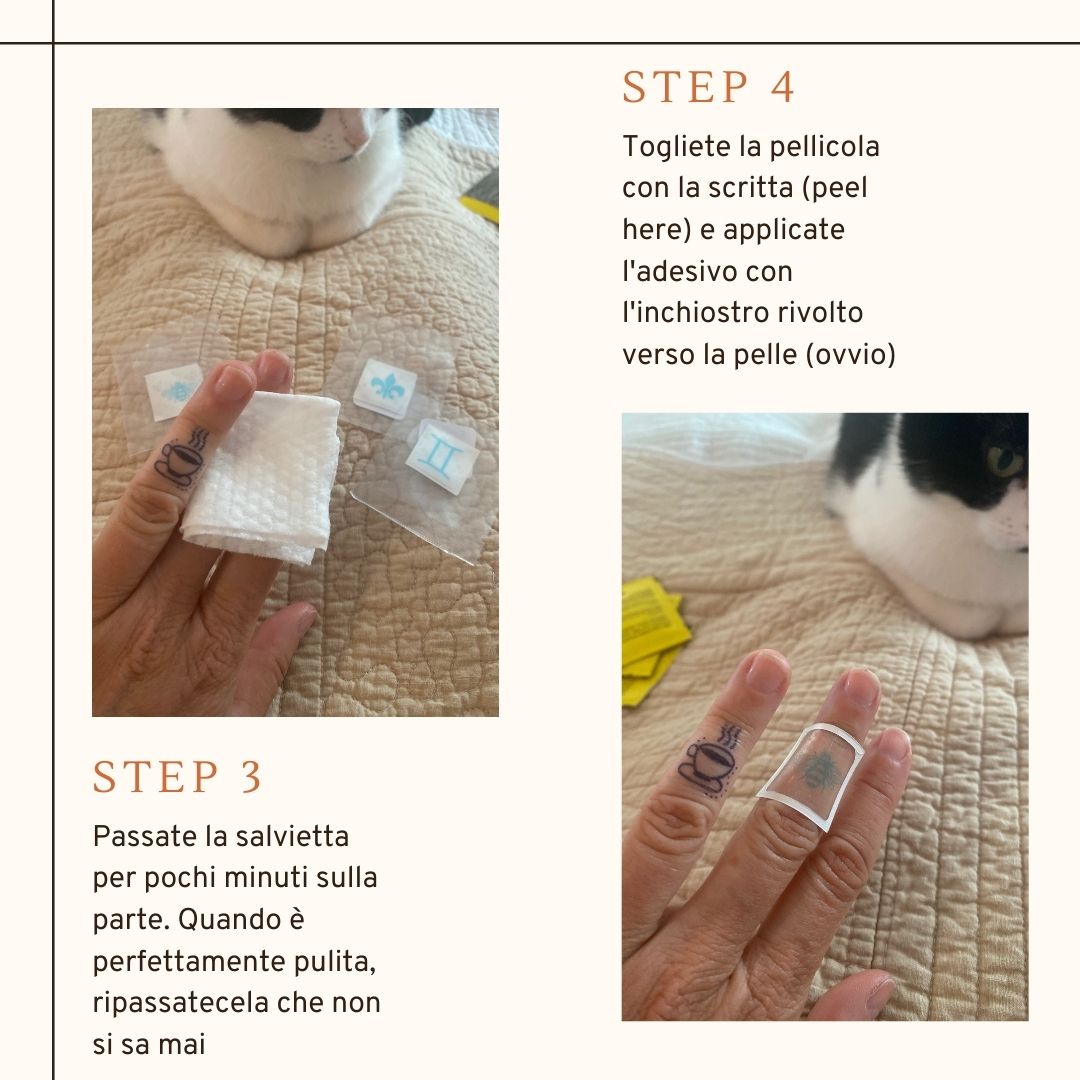 Evitate, una volta applicato, di usare troppo l’acqua o i disinfettanti per le mani perché ovviamente vanno a scolorire il disegno. Che però non sbiadisce in malo modo ma piuttosto scompare. La mia esperienza è che se dovete fare pulizie di casa o, tipo me, affrontare i vetri dopo una libecciata è meglio rimandare o indossare sempre guanti di lattice. Che però se hanno talco costringono a lavarsi le mani e siamo punti e a capo. La prima applicazione è durata 10 giorni, la seconda – a forza di disinfettanti e acqua, solo 5.