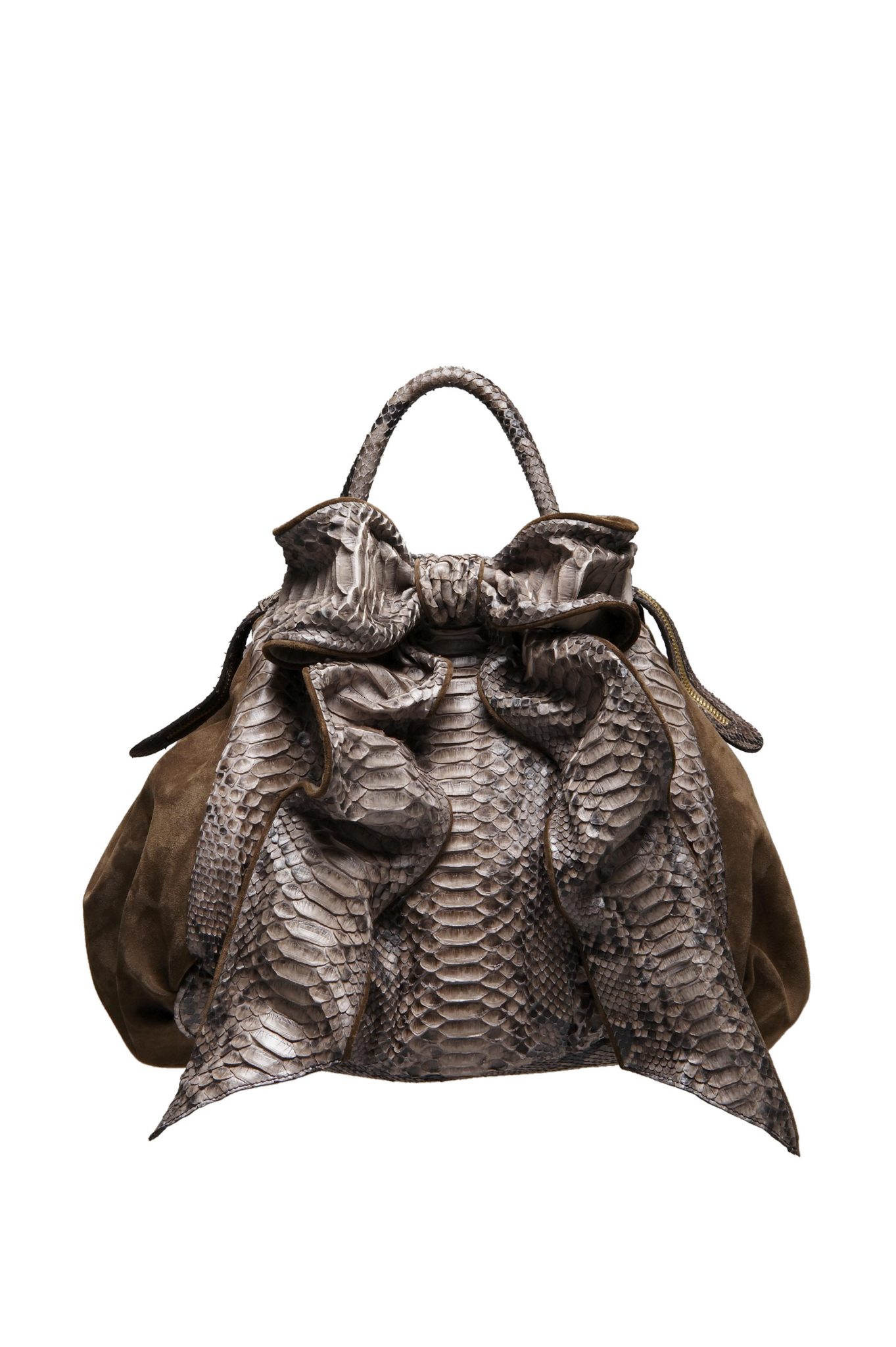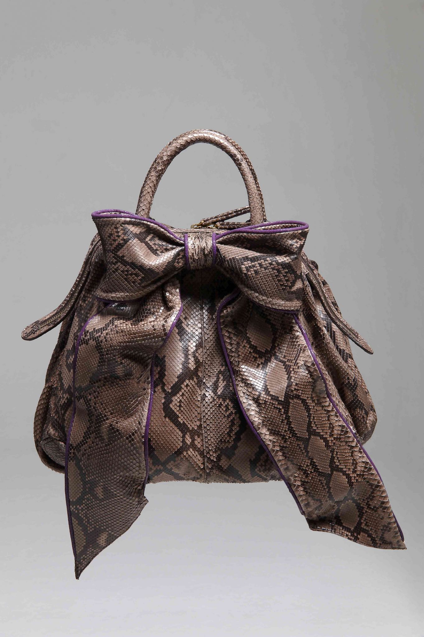 *IL PEZZO FORTE*: La Bow Bag. Per una volta (finalmente) la taglia XL è cool; infatti la Bow bag è confezionata con 17 metri di pitone. E’ finita a mano e completamente made in Italy.